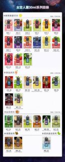 SPACEMAN 太空人煙油以星際為靈感,推出 30 mL 丁鹽煙油,每瓶濃度為 35 mg(3.5%),口味超過 20 種以上,從清新果香、茶飲、飲料風格到濃郁煙草,完美適配注油式主機與 POD 類設備,為使用者帶來層次豐富的吸煙體驗。